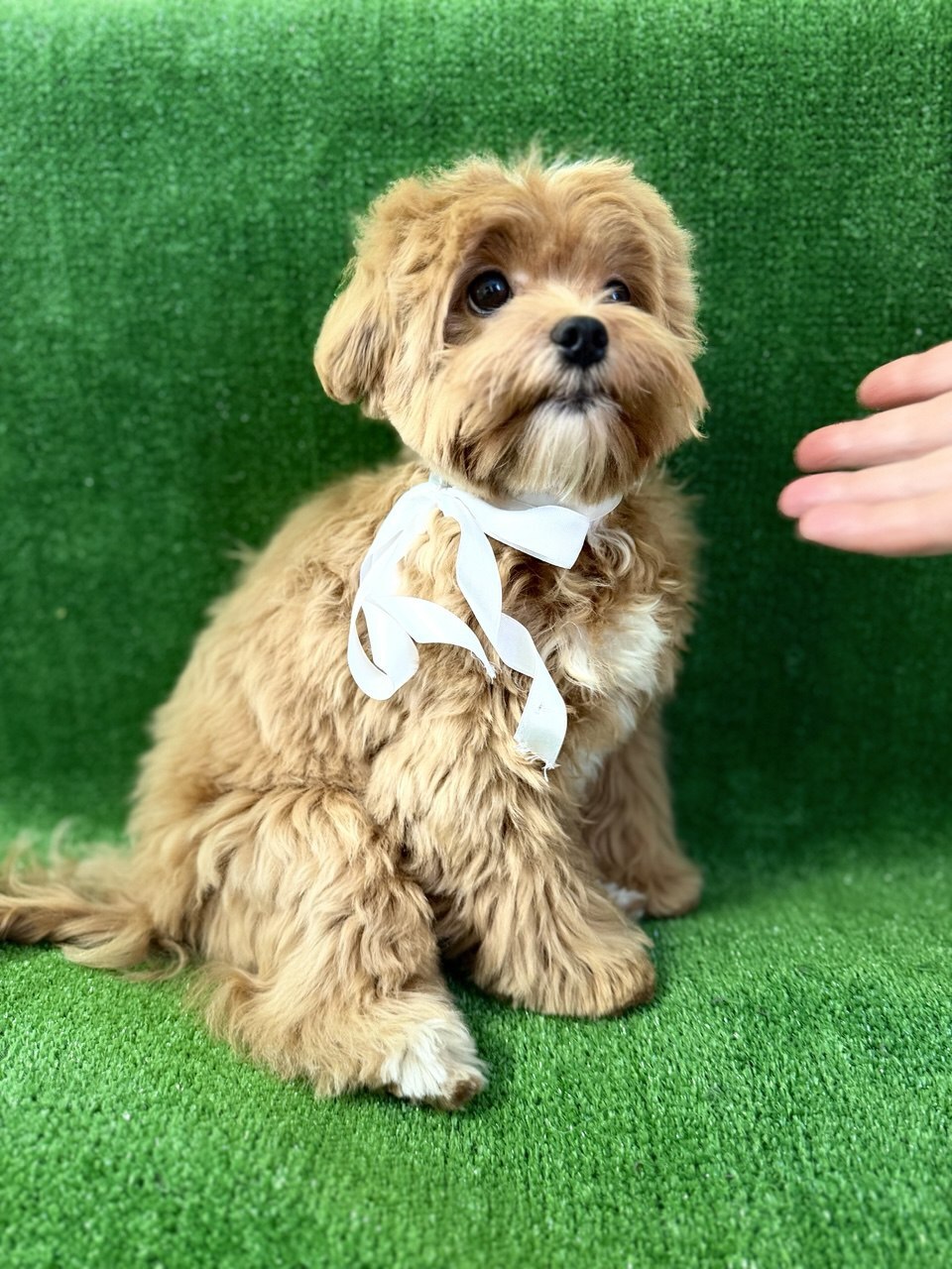 Потрясающий мальчик Мальтипу в эксклюзивном окрасе с белыми носочками, грудкой, и звездочкой во лбу, без деффектов. Очень активный, любознательный, пеленку знает на 5+, привит полностью (Нобивак), уже прошел первый груминг. Документы BLL (Италия).